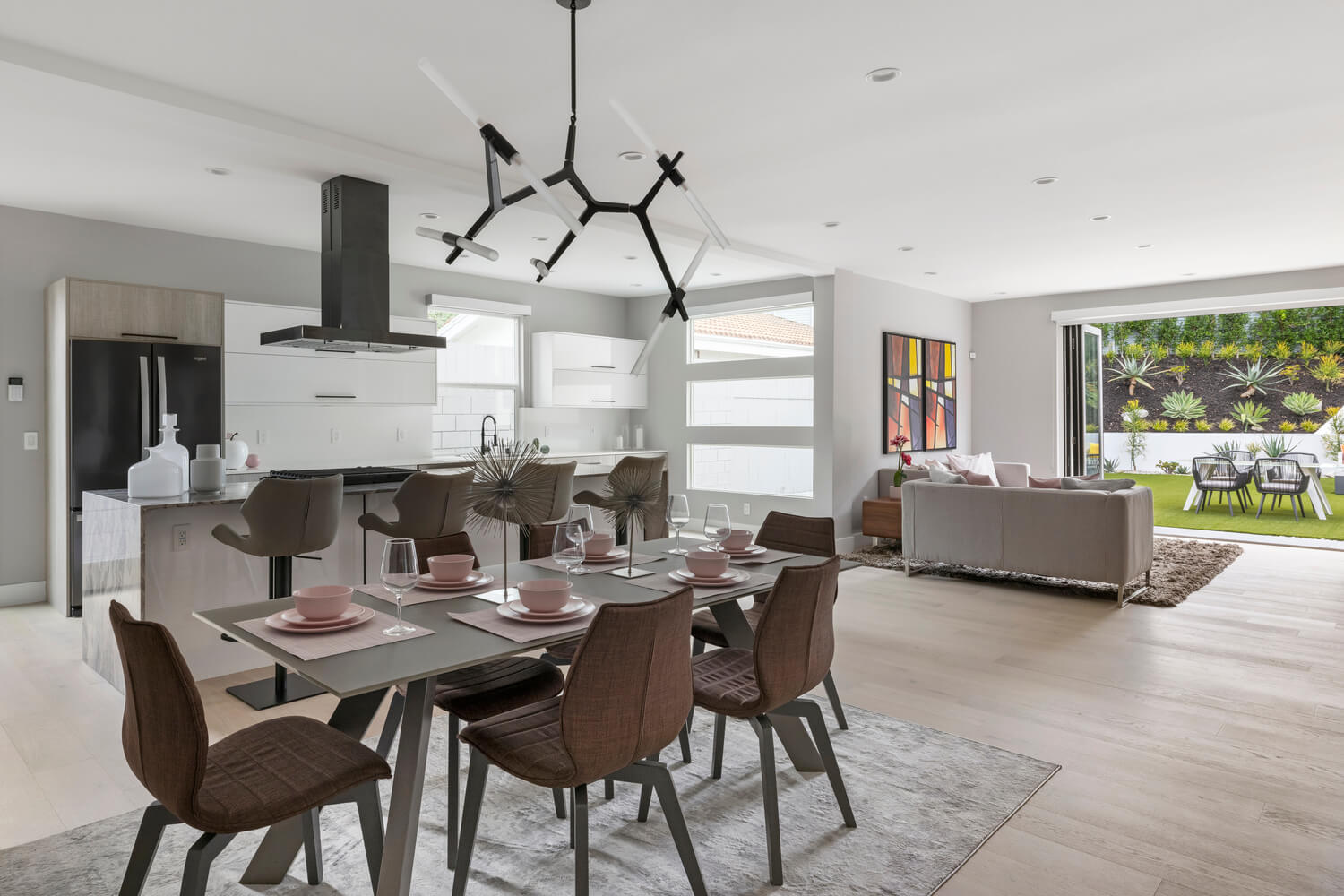 A grand and inviting completely open floor-plan allows for interaction with all of your guests & family from anywhere in the home, seamlessly flowing out to the sumptuous and spacious outdoor living area via the custom bi-fold doors.